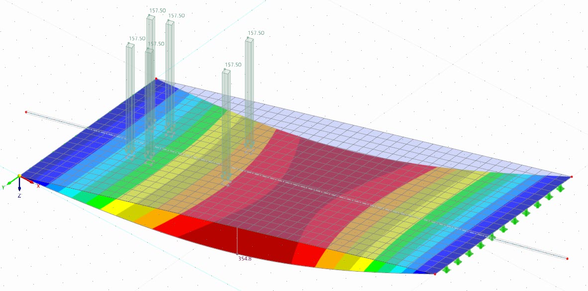 In de laatste versie van RFEM 6 kunt u lopende lasten over vlakken laten lopen. De lasten volgen een bepaald traject. De lasten kunnen uit een tandemstelsel bestaan met losse puntlasten of aslast.